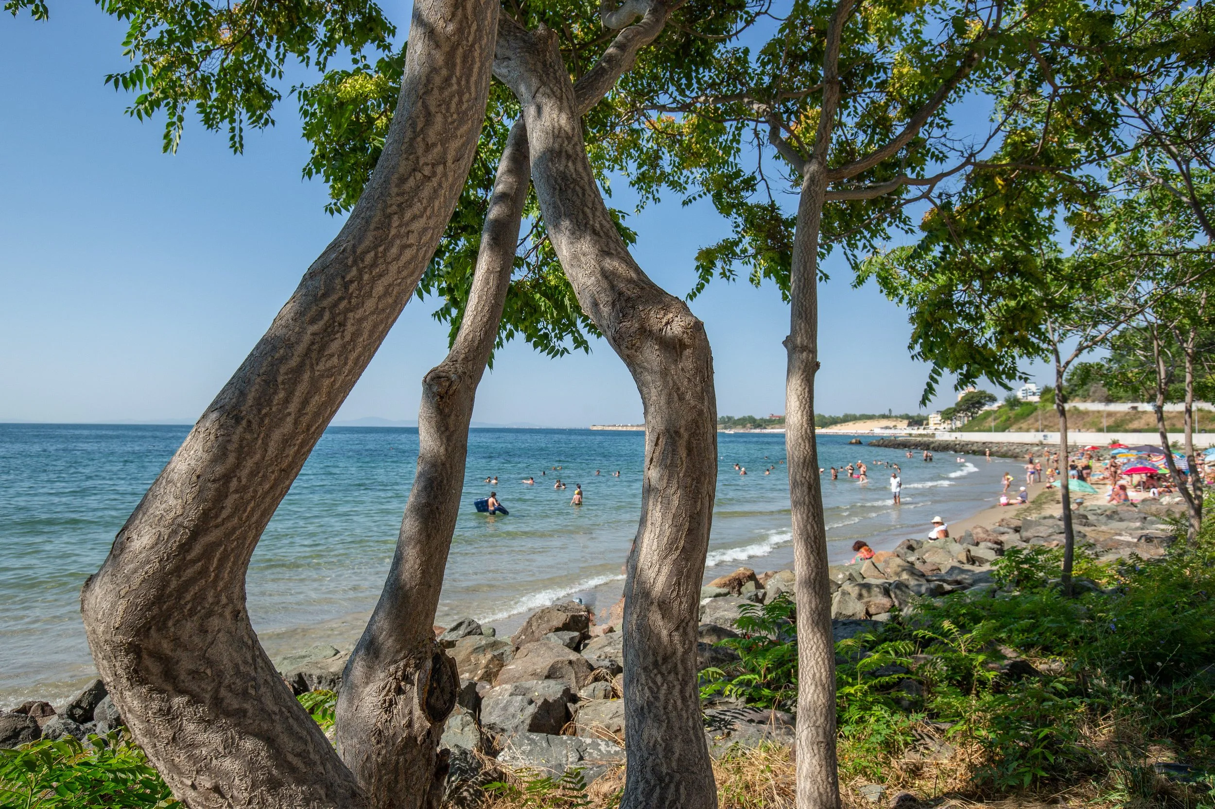 A tengerpart egyébként szép, a tenger tiszta. Az óvárosi strandok helyett érdemes 15 perc sétát rászánni, és elmenni a Déli strandra vagy az Orosz strandra. Amennyiben valakinek van hozzá kedve, pár leváért elbuszozhat, elhajózhat, kisvonatozhat a Napospartra is, de szerintem nem éri meg. A strand szép, a víz tiszta, de a Déli strand csendesebb, barátságosabb. A Napospart környezete, a szemetes utcák, éjszakai bárok nem mindenkinek jönnek be. Ez nem egy olyan multikulturális nyüzsgés amiben jó feloldódni, sodródni. Nekem ez volt a benyomásom.